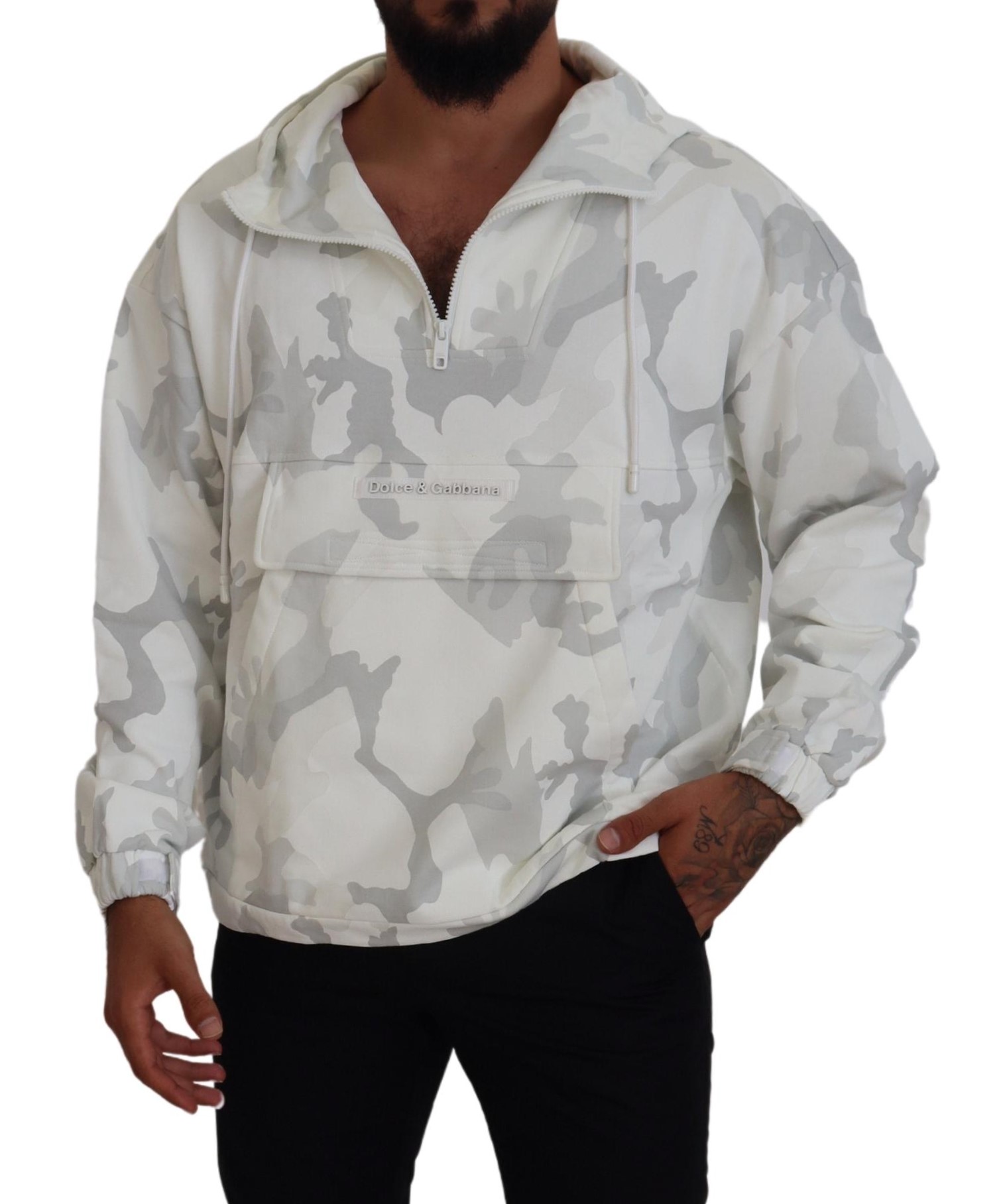 Be the first to review “Dolce & Gabbana Weiße Windjacke mit Kapuze und Tarnmuster”