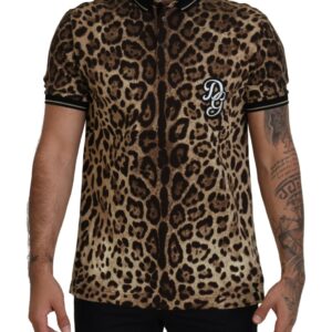 Dolce & Gabbana Braunes Leoparden-Kragen-T-Shirt für Männer Casual