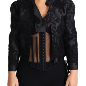 Dolce & Gabbana Schwarze Spitze durchsichtiges Korsett Organza Seidenjacke