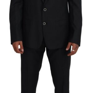 Dolce & Gabbana Schwarzer doppelreihiger Slim Fit Anzug aus Wolle