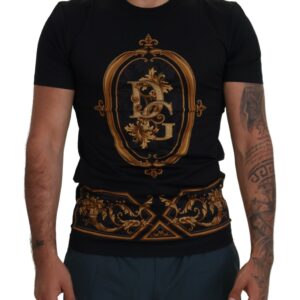 Dolce & Gabbana Schwarzes bedrucktes T-Shirt mit Rundhalsausschnitt und kurzen Ärmeln