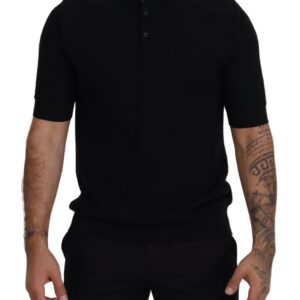 Dolce & Gabbana Schwarzes T-Shirt mit Mandarinenkragen und kurzen Ärmeln
