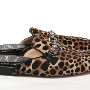 Christian Louboutin Schwarz-Braun Leapord Print Open Back Loafer